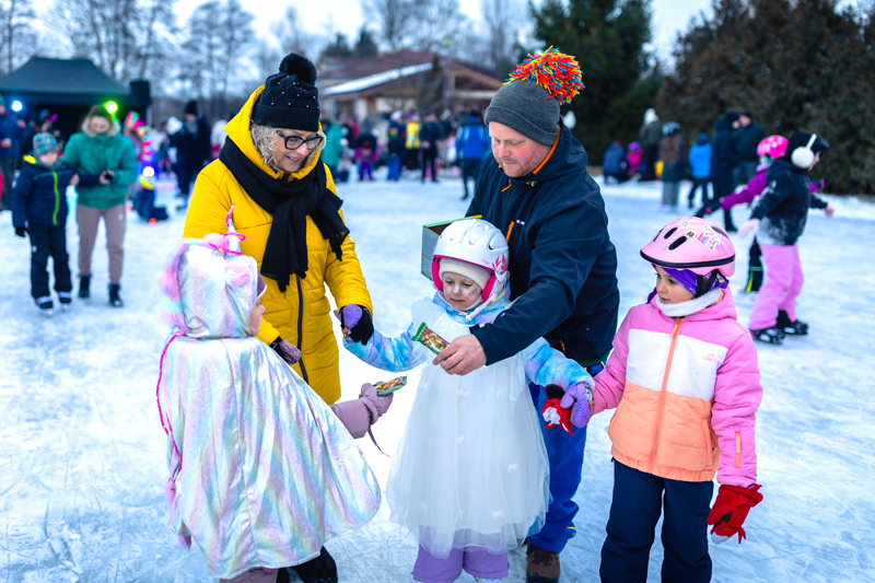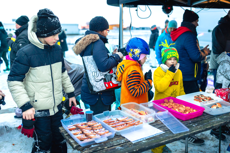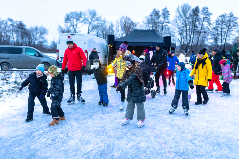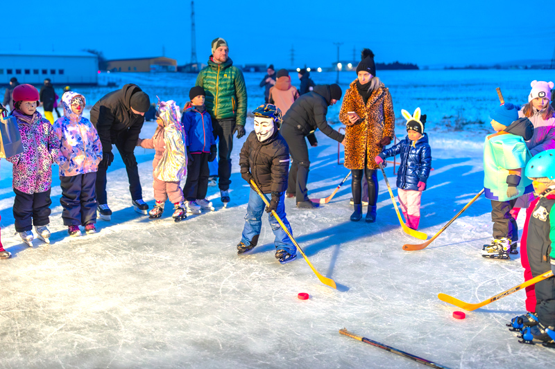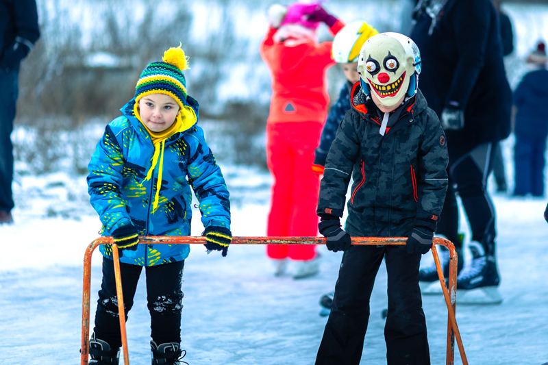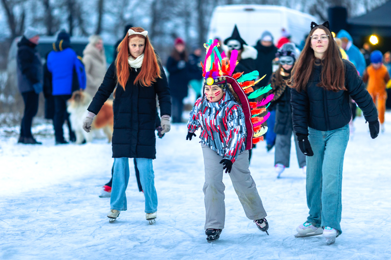 Po ľade sa v pestrofarebných maskách, obuté v korčuliach, preháňali deti aj ich rodičia. Masky sa predviedli v ľadovej manéži a tie najkreatívnejšie organizátori podujatia odmenili sladkou dobrotou. Rodičia sa v mraze, čo štípal až do kostí, mohli ohriať vareným vínom, deti čajom a každý mohol ochutnať rôzne slané či sladké koláčiky. Hladoši si pochutili na voňavom čerstvom hot-dogu alebo obľúbenom tradičnom chlebe s masťou a cibuľou.