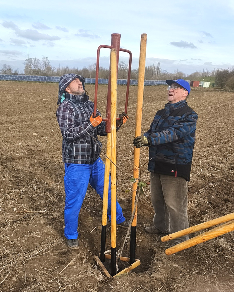 Do realizácie sa zapojili desiatky dobrovoľníkov – od detí zo základnej školy cez členov miestnych združení až po starších obyvateľov. Spolu vybudovali lavičky, ohnisko, stojan na bicykle, dokonca hmyzí domček. V sade sú umiestnené IBC nádoby na pohodlné zalievanie stromov a pripravujú sa drevené informačné tabuľky s názvami odrôd.