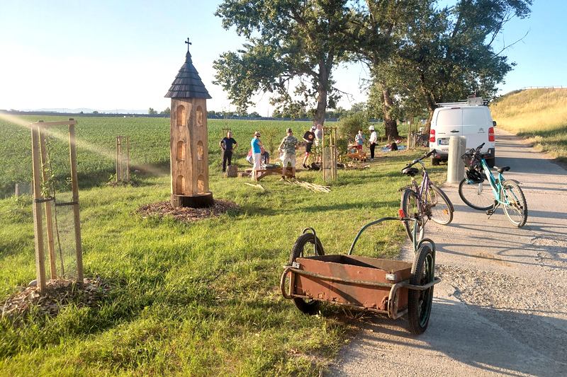 Mladí klčovali nálety a potom sadili stromy, starší tam vybudovali drevenú kaplnku. Miesto sa stalo obľúbenou zastávkou peších aj cyklistov. Práve tento ich počin – spoločný projekt občianskeho združenia Včeloz a nadšencov, dobrovoľníkov z tímu Drahovský vidiecky sad – bol prednedávnom ocenený v rámci programu Zelené oázy.