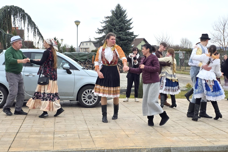 Podujatie sa ako vždy začalo príchodom členov Folklórneho súboru Lusk z Krakovian a Detského folklórneho súboru Krakovanček pred múzeum Za krakovskú bránu. Tentoraz to bolo pod taktovkou Folklórnej skupiny Krakovčanka. Pri jej hudbe sa folkloristi poriadne vyzvŕtali a rovno na ulici v strede dediny pozvali do tanca aj prizerajúcich.