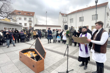 Piešťanci odprevádzali basu na jej poslednej ceste v nedeľu 15. februára. Fašiangovú veselicu sprevádzalo výrazné ochladenie a silný mrazivý vietor.