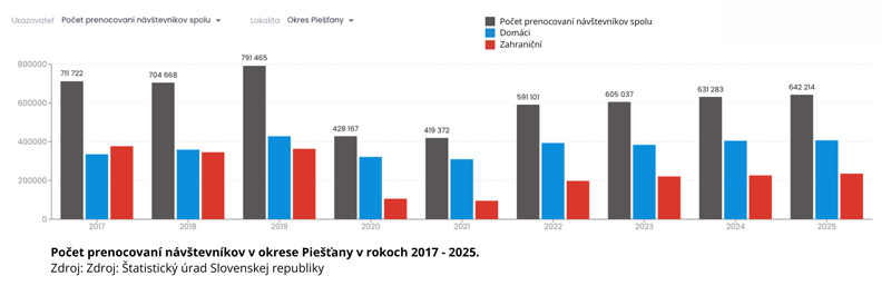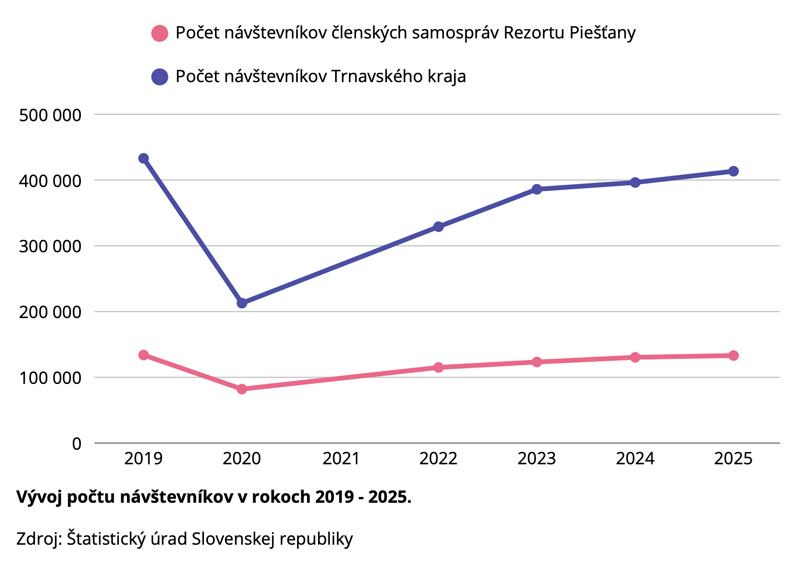 Štatistický úrad SR vždy začiatkom roka zverejňuje údaje o kapacitách, návštevnosti a tržbách ubytovacích zariadení cestovného ruchu za predchádzajúci rok. Oblastná organizácia cestovného ruchu Rezort Piešťany sa každoročne vyjadruje k dátam za oblasť svojej pôsobnosti. Minulý rok považuje z hľadiska cestovného ruchu v regióne za úspešný. Vývoj v Rezorte Piešťany zapadá do celoslovenského trendu rastu cestovného ruchu, kde patril rok 2025 medzi najúspešnejšie roky v novodobej histórii.