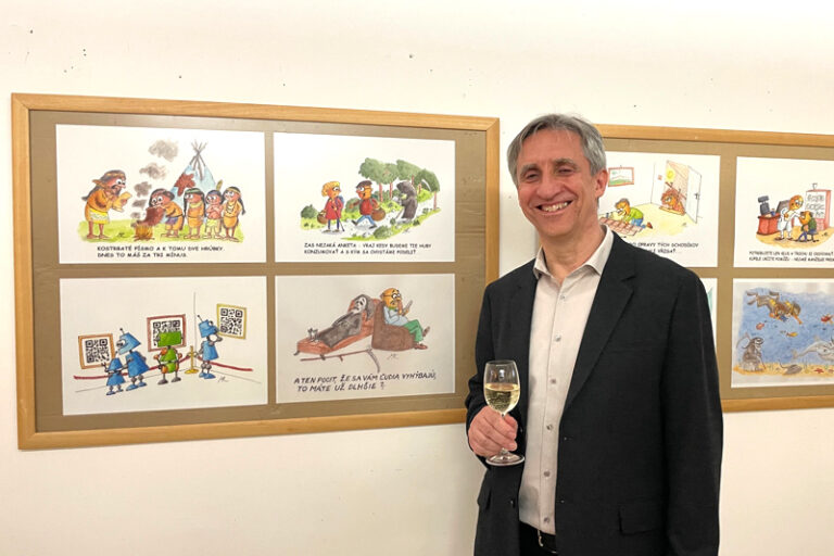 Vystavených je štyridsaťosem karikatúr, ktoré sú výberom z viac ako dvesto diel, ktoré autor doteraz vytvoril. Väčší počet sa do priestorov jednoducho nezmestil. Každá z kresieb zachytáva konkrétnu situáciu, ktorú človek môže poznať aj zo svojho života, a je niečím vtipná alebo je pretransformovaná na humor, niekedy sarkastickým či suchším spôsobom.