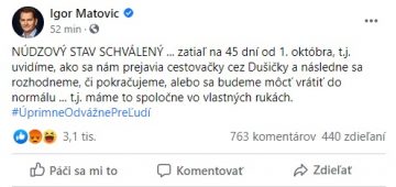 Od štvrtku 1. októbra platí na Slovensku v súvislosti s pandémiou koronavírusu opätovne núdzový stav. Rozhodla o tom dnes Vláda…