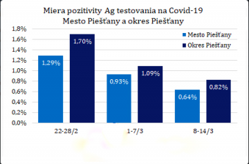 Výsledky víkendového antigénového testovania ukázali, že chorobnosť na ochorenie COVID-19 má v Piešťanoch, ale aj celom okrese, klesajúci trend