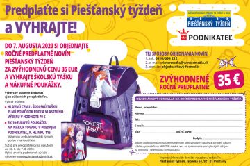 Objednajte si ročné predplatné Piešťanského týždňa a vyhrajte skvelé ceny. Výhercov žrebujeme každý týždeň!
