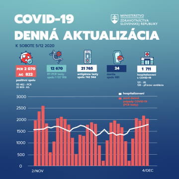 KORONAVÍRUS: Pribudlo ďalších 2 070 pozitívnych prípadov, počet úmrtí sa zvýšil o 24.