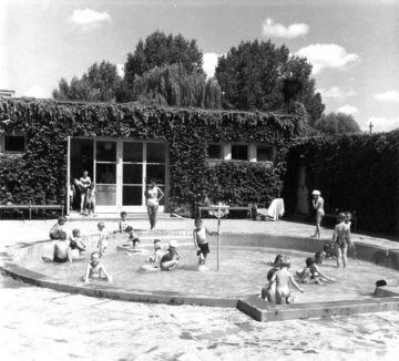 Kúpalisko Eva. Voda tmavá ako kofola, krik, vajcový smrad, hlava na hlave. Pred bufetom „šóry“ na párky s horčicou. Stojany…