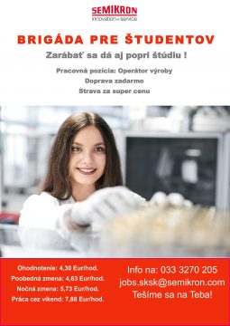 Brigádovať môžete aj popri štúdiu. Využite benefity ako doprava zadarmo, alebo strava za super cenu. Viac informácií na tel. čísle…