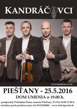 Ak sa chcete v stredu 25. mája o 19.00 h v Dome umenia Piešťany zúčastniť koncertu Kandráčovcov, pošlite SMS v…