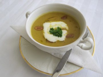 Suroviny: 2 ks tekvica hokkaido, 50 g cibuľa šalotka, 125 g biele víno, 250 g kokosové mlieko, 1 g muškátový…