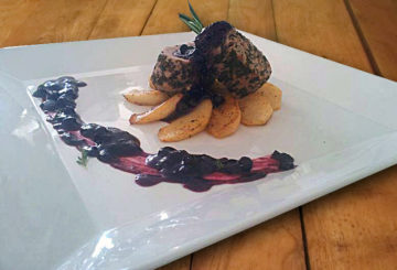 Panenka v bylinkovej kruste: 700 g bravčovej panenky, soľ, korenie, tymian, rozmarín
