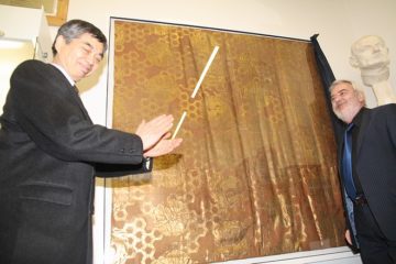 PIEŠŤANY – Japonský záves z roku 1757, ktorý darovali generálovi Milanovi Rastislavovi Štefánikovi počas jeho diplomatickej misie v krajine zapadajúceho…