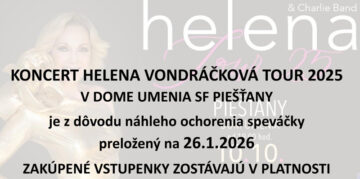 Koncert Heleny Vondráčkovej - HELENA Tour 2025, ktorý sa mal uskutočniť v Dome umenia Slovenskej filharmónie Piešťany v piatok 10.…