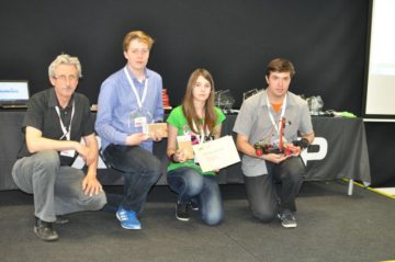 Traja študenti Strednej priemyselnej školy elektrotechnickej v Piešťanoch - Jakub Lackovič, Matej Ondreička a Patrícia Pálková - pod vedením šéfa…