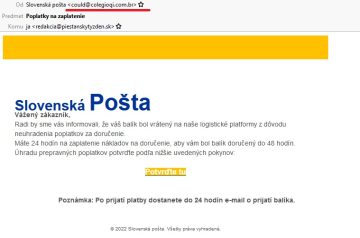 Odosielateľ používa zdeformované logo Slovenskej pošty a od adresátov pýta poplatok za doručenie zásielky. Ich odosielateľom nie je Slovenská pošta,…