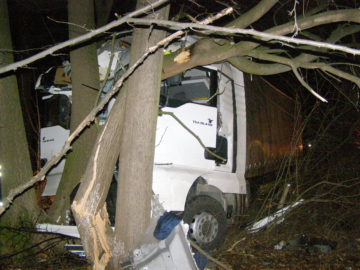 Takmer osem hodín piešťanskí hasiči pomáhali pri záchrane vodiča i uvoľnení jeho kamiónu zo zovretia lesného porastu.