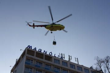 Dnes 5. decembra ľudia v centre Piešťan obracali hlavu k oblohe.