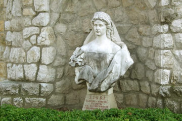 Socha cisárovnej Alžbety je dnes zastrčená pri stene kúpeľného domu Irma.