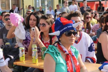 Námestie slobody v Piešťanoch sa v týchto chvíľach naplnilo stovkami ľudí, ktorí sledujú majstrovský zápas našich hokejistov s Fínmi.