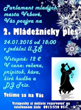 Mládežnícky ples Parlamentu mladých mesta Vrbové sa uskutoční 24. januára v jedálni Základnej školy na Komenského ulici. Do tanca zahrá…