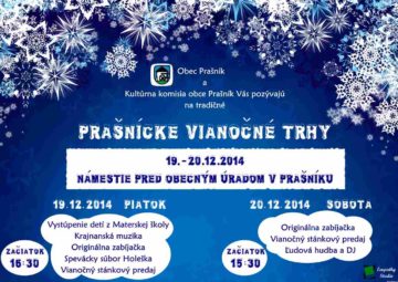 Obec Prašník a Kultúrna komisia obce Prašník vás pozývajú v dňoch 19. a 20. decembra na tradičné Prašnícke vianočné trhy.